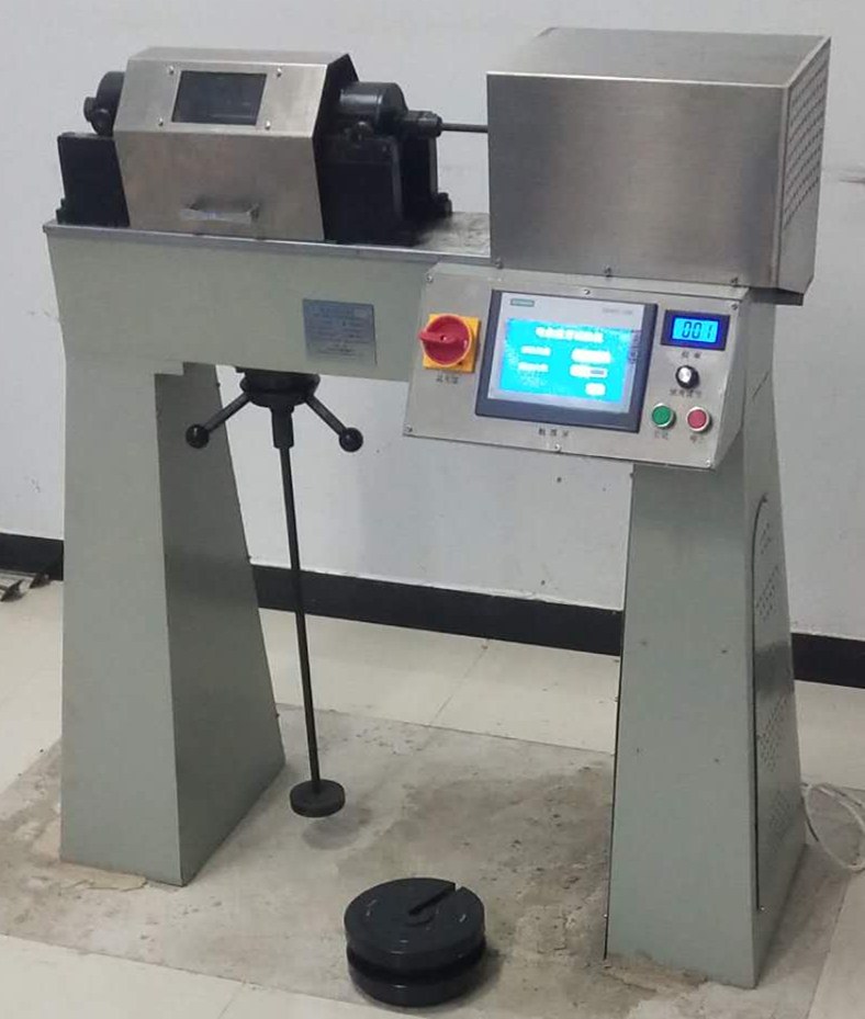 测试样品被固定在水平的样品台上,在规定的磨料和负载下随着样品台的水平移动而被磨耗。测试臂的另一端配以砝码来保持测试臂的平衡,以确保样品表面负载的精确性。磨料