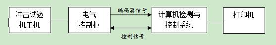 该类系统由1台冲击试验机主机,1台主控计算机(IBM-PC计算机)以及相应的软件系统组成。其中主控计算机完成对冲击试验机的自动控制及试验数据实时采集、存贮及处理。系统组成情况见图1所示: