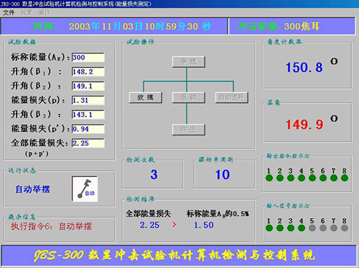 8、能量损失测定功能。按照国标所规定的冲击试验机标准测量方法测定试验机的能量损失情况,以判断试验机是否合格。