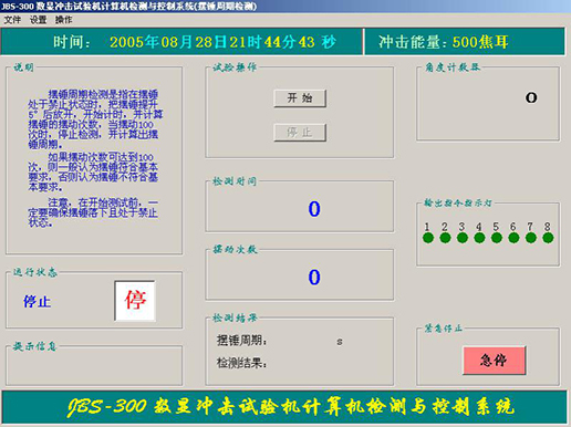 9、摆锤周期检测功能。按照国标所规定的冲击试验机标准测量方法测定试验机的摆锤周期,以判断试验机是否合格。