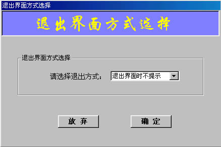 在退出界面方式栏目中选择所需的退出方式,然后按确定按钮保存选择结果。按放弃按钮放弃选择结果。