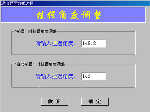 此时在“举摆”时挂摆角度调整的栏目中输入需要的挂摆角度;在“自动举摆”时挂摆角度调整的栏目中输入需要的挂摆角度。