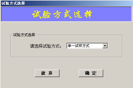 试验方式选择栏目中选择所需的试验方式,然后按确定按钮保存选择结果。按放弃按钮放弃选择结果。