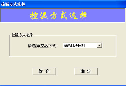 控温方式选择栏目中选择所需的控温方式,然后按确定按钮保存选择结果。按放弃按钮放弃选择结果。