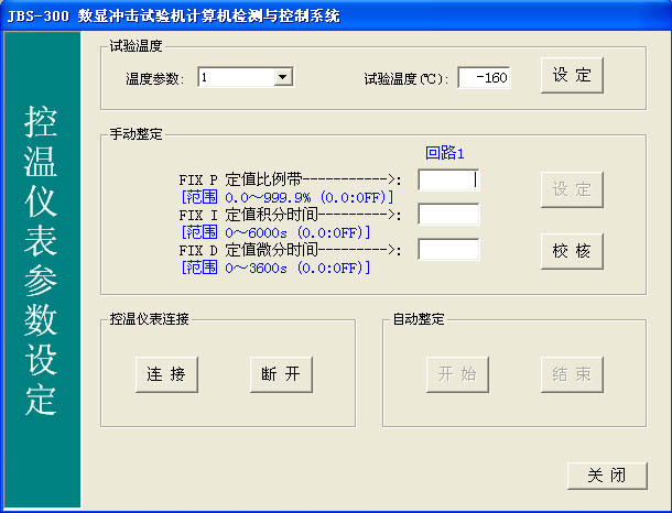 (2)控温仪表连接:当需要手动调整仪表的参数时可用此功能,按断开按钮后仪表的通讯指示灯关闭,此时即可手动调整仪表的参数;按连接开按钮后仪表的通讯指示灯开启,此时只能用计算机调整仪表的参数。